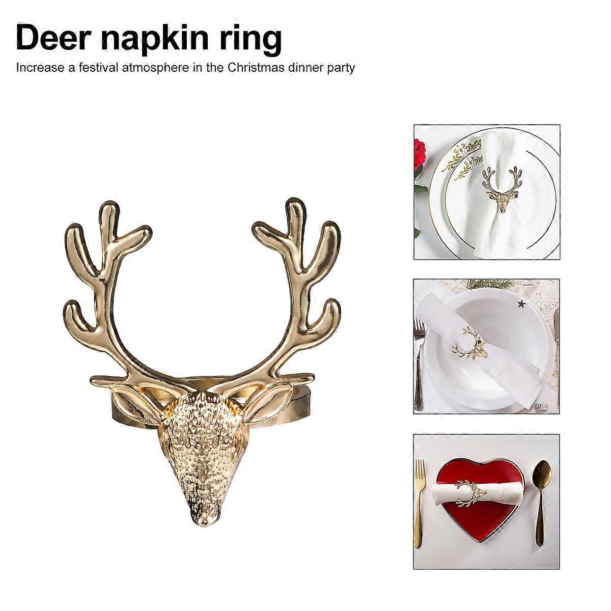 4pcs Deer Head Napkin Buckle Rustic Holiday Table Decor, Christmas Elk Stag Animal Fancy Alloy Design for Winter Adult Decorations