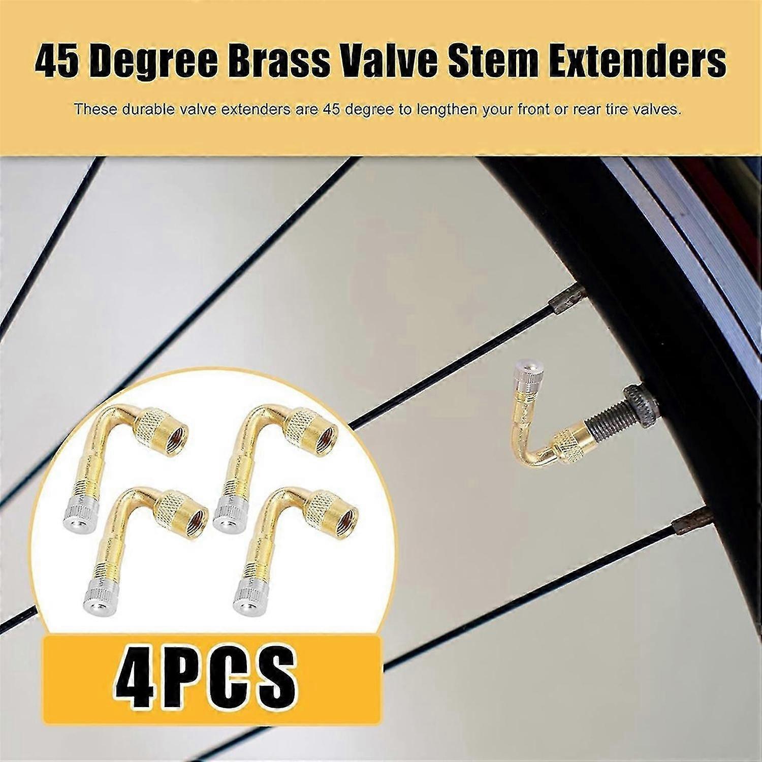 4 Pcs 45-Degree Tire Valve Stem Extension Adapters Brass Valve Extenders for Tires of Cars RV Motorc