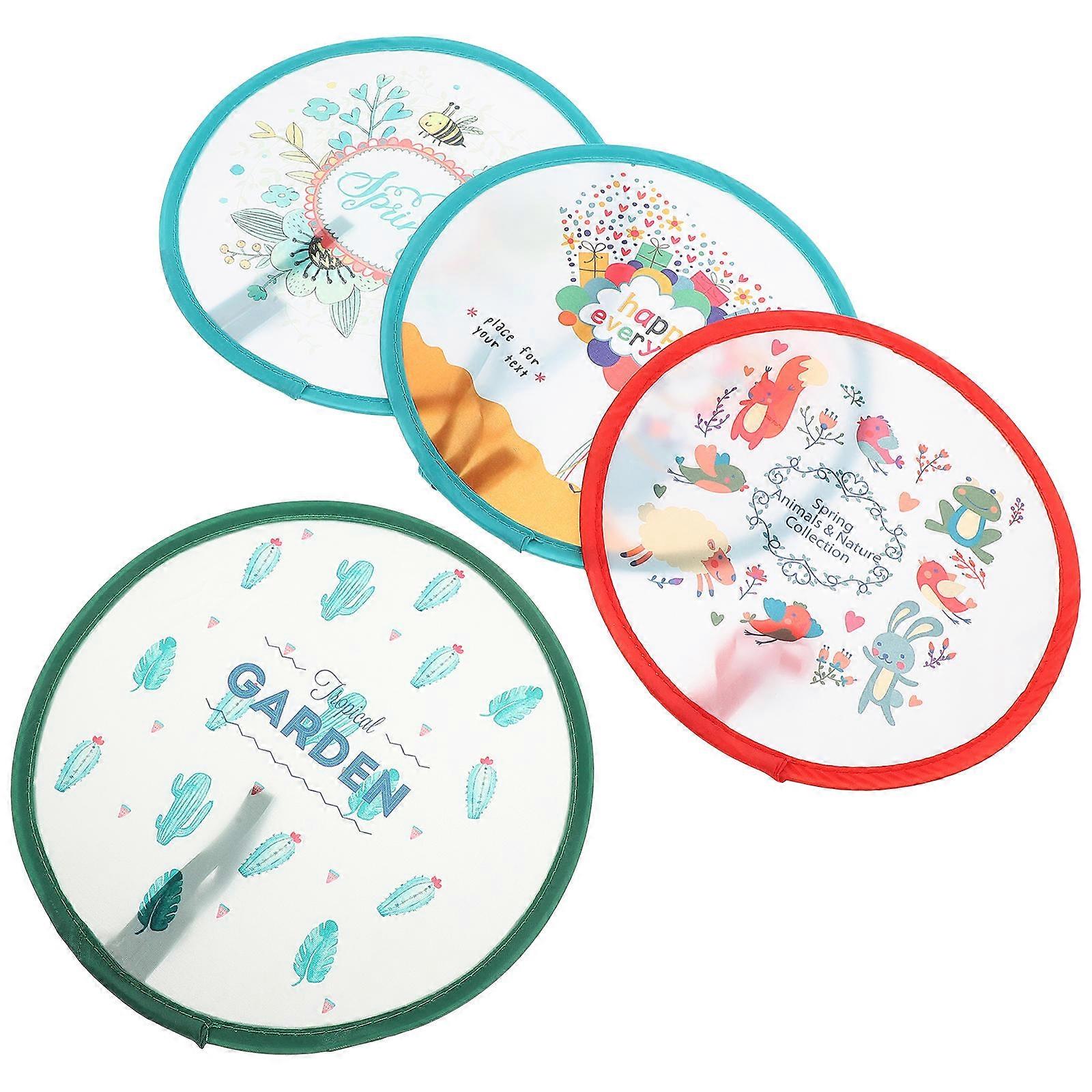 4pcs Foldable Round Japanese Style Handheld Fan Cartoon Pattern Portable Lightweight Summer Cooling Accessory for Party Dance Photography