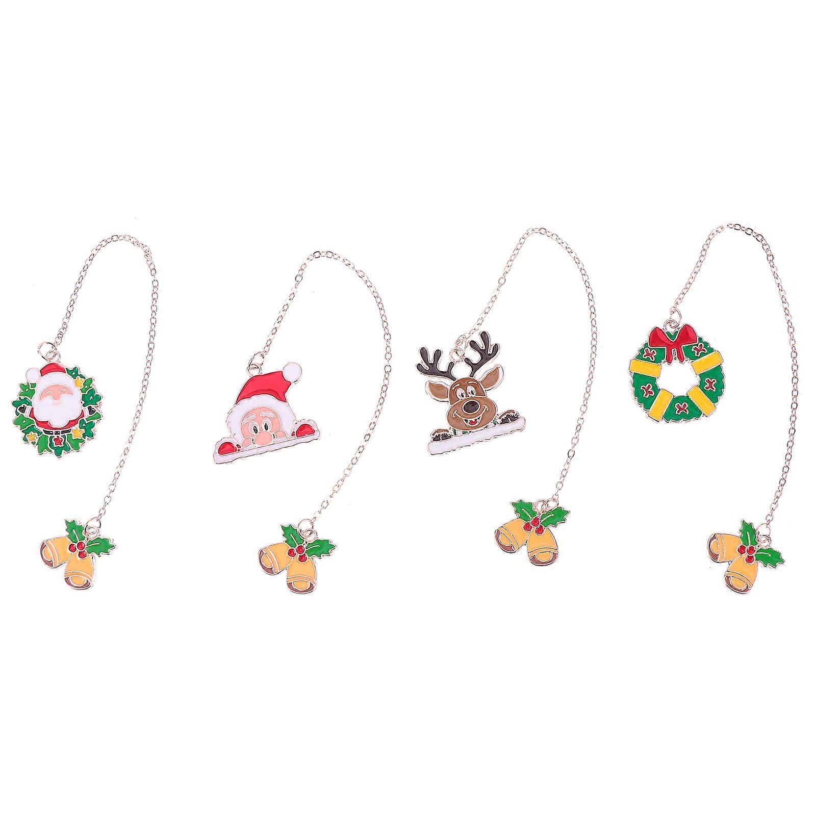 4Pcs Christmas Theme Alloy Bookmarks With Deer And Santa Claus Pendant Crafted For Reading Gifting Assorted Color Bookmarking Accessories