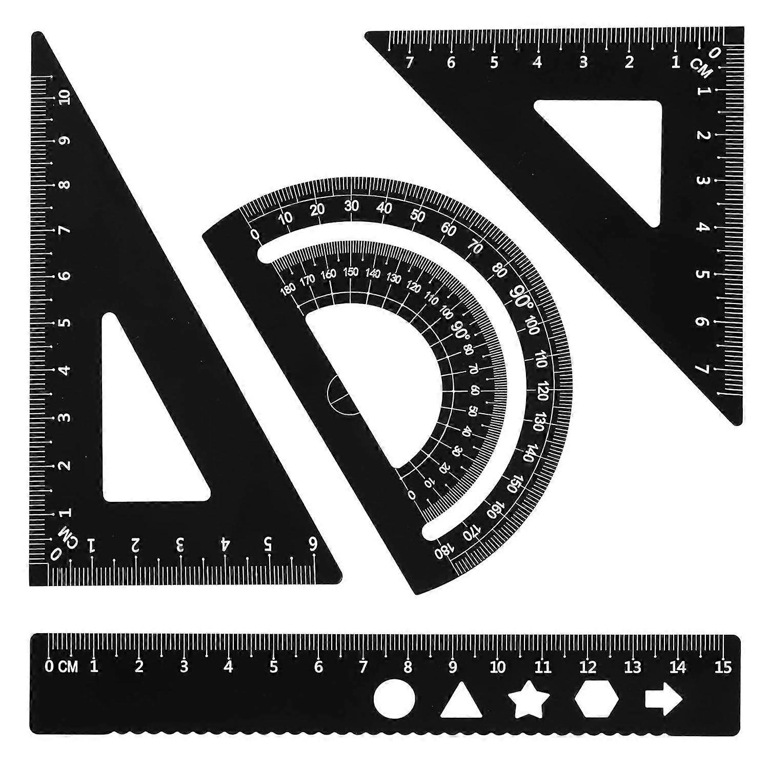 4 Pcs Metal Geometry Set Aluminum Alloy Ruler Math Drafting Rulers Kit- Aluminum Triangle Rulers Geometric Protractor Triangular Ruler Set for School