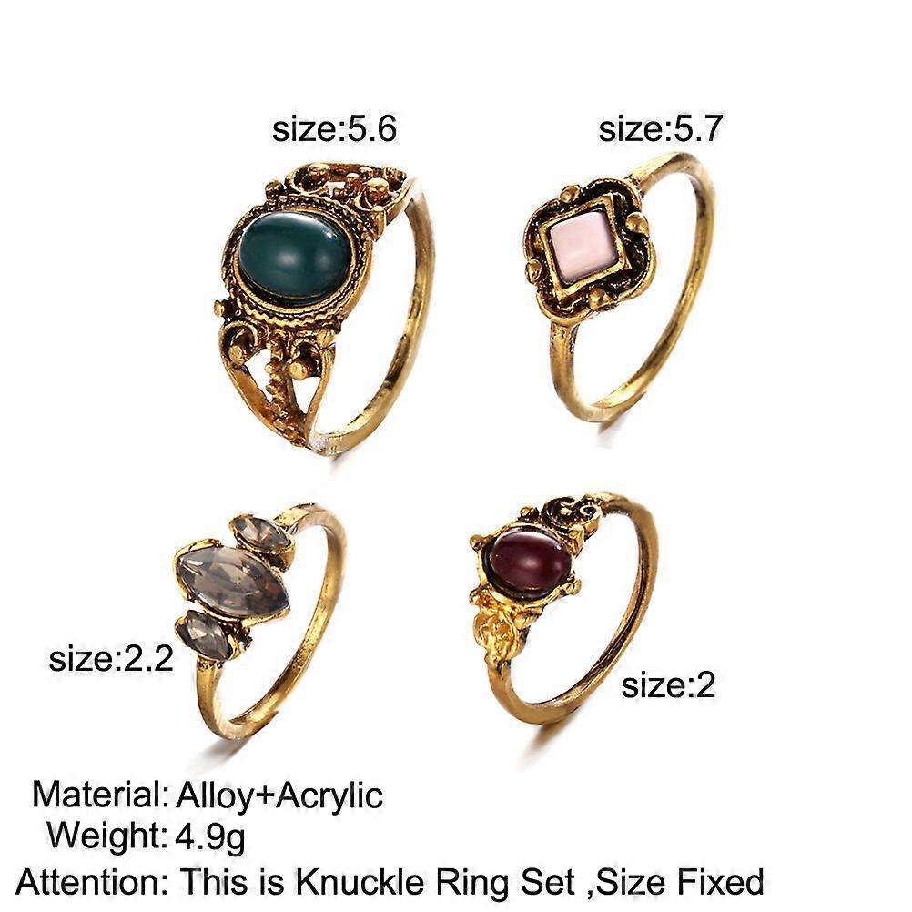 4pcs Vintage Style Gemstone Ring Set for Women Ladies Jewelry Accessories