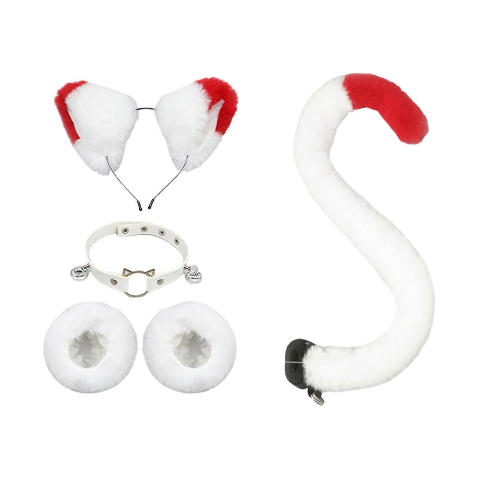 4pcs Cats Costume Set Halloween Costume Cosplay Party Props Cats Ears Headband Bells Choker Tail Wrist Cuffs Kids Adult White and red