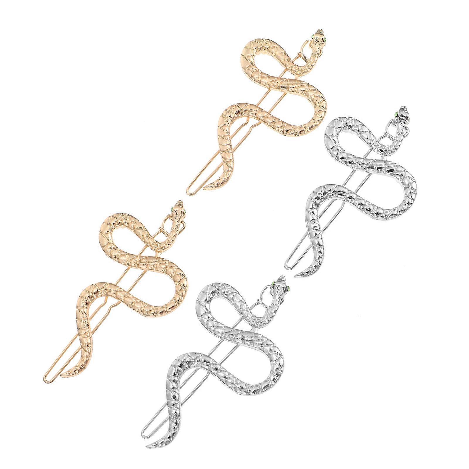 4PCS Alloy Snake Pattern Hair Clips Creative Design Barrettes for Halloween Daily Wear Hair Accessories Gold Silver Clips Included