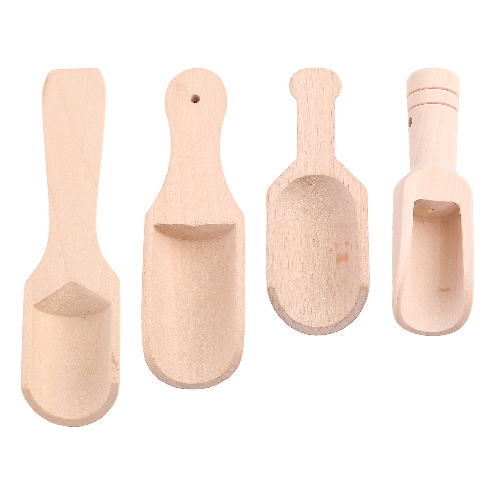 4Pcs Wooden Scoop Multipurpose Mini Bath Salt Spoon for Flour Candy Spices Sugar Cereal Coffee Beans Condiment Kitchen Gadgets Teaware Accessories