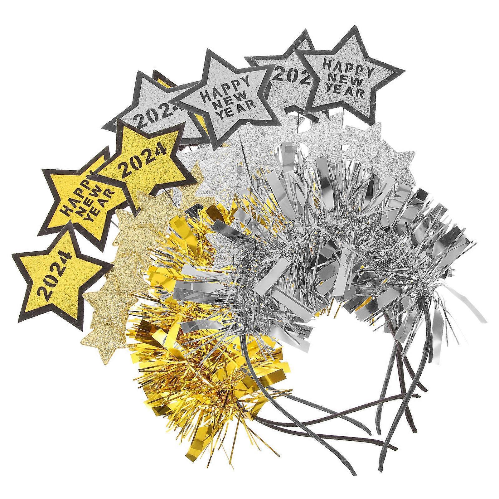 4pcs Decorative Headbands for Party Photo Props with Silver Year and Star Tinsel Designs