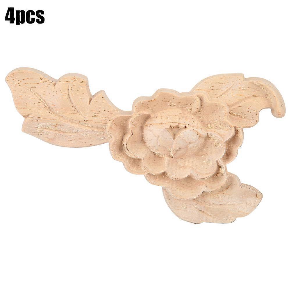 4Pcs Carved Corner Onlay Applique Door Cabinet Rose Unpainted European Style(B)