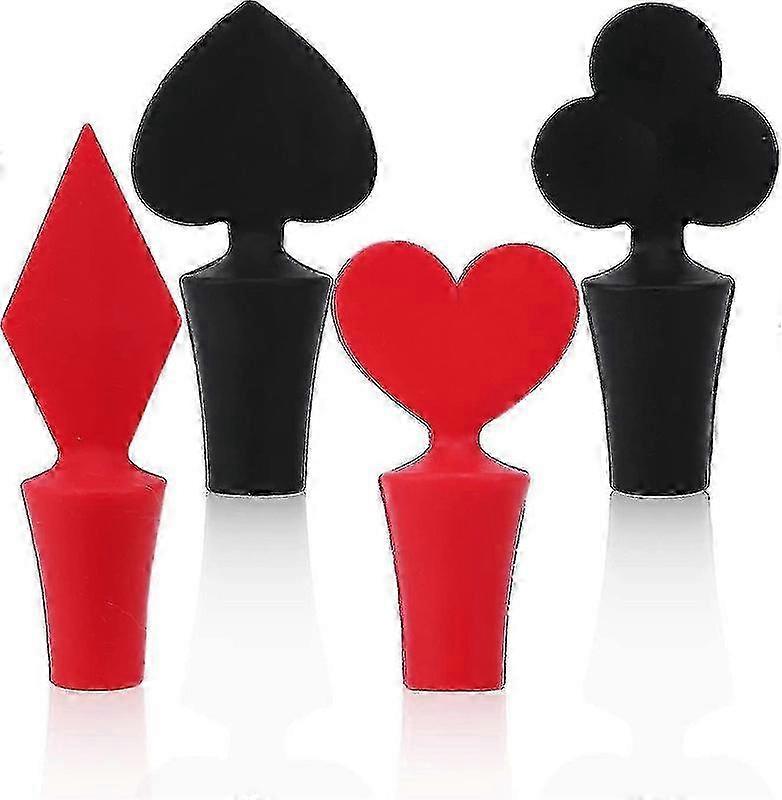4pcs Crday Silicone Poker Shape Wine Stoppers, Beverage Bottle Sealer Red Wine-- 26s