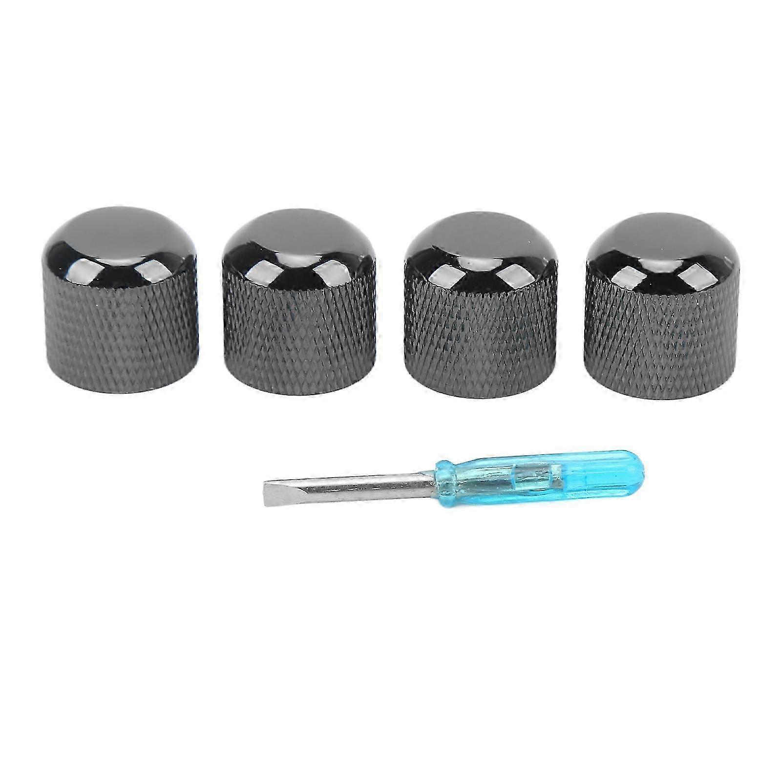 4Pcs Guitar Tone Volume Knob Professional Metal Potentiometer Hat Cap Parts Accessories with Slot Screwdriver Black