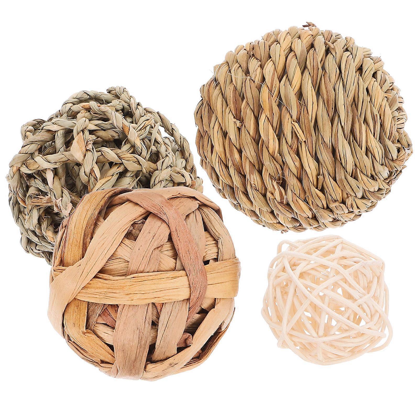 4pcs Natural Woven Bunny Chew Toy for Rabbits and Pets – Safe Dental Care, Gum Massage, Biting Training, and Interactive Play Balls