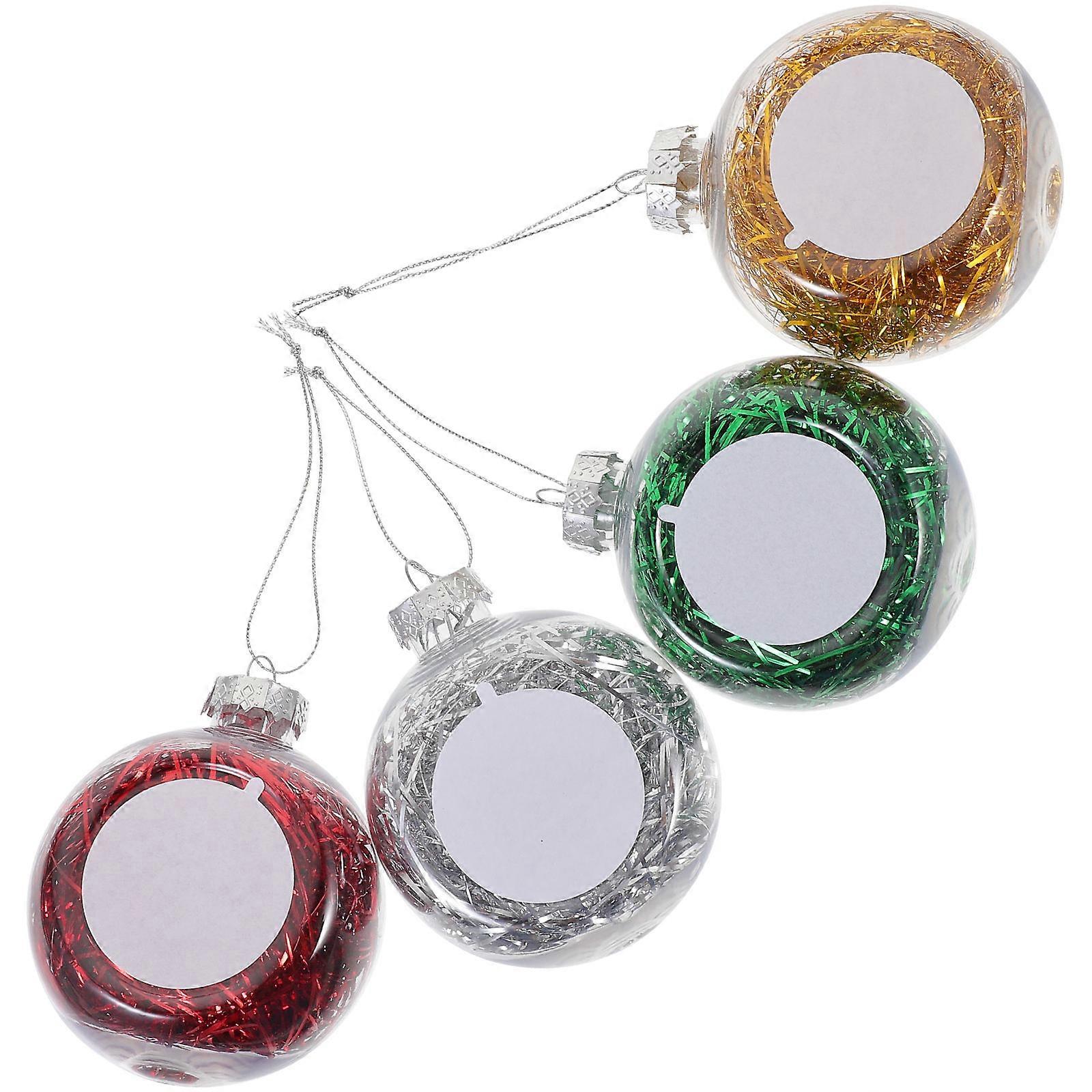 4PCS Sublimation Christmas Ball Ornaments, Vintage Plastic Baubles in Silver and Green for Xmas Tree Hanging Decorations