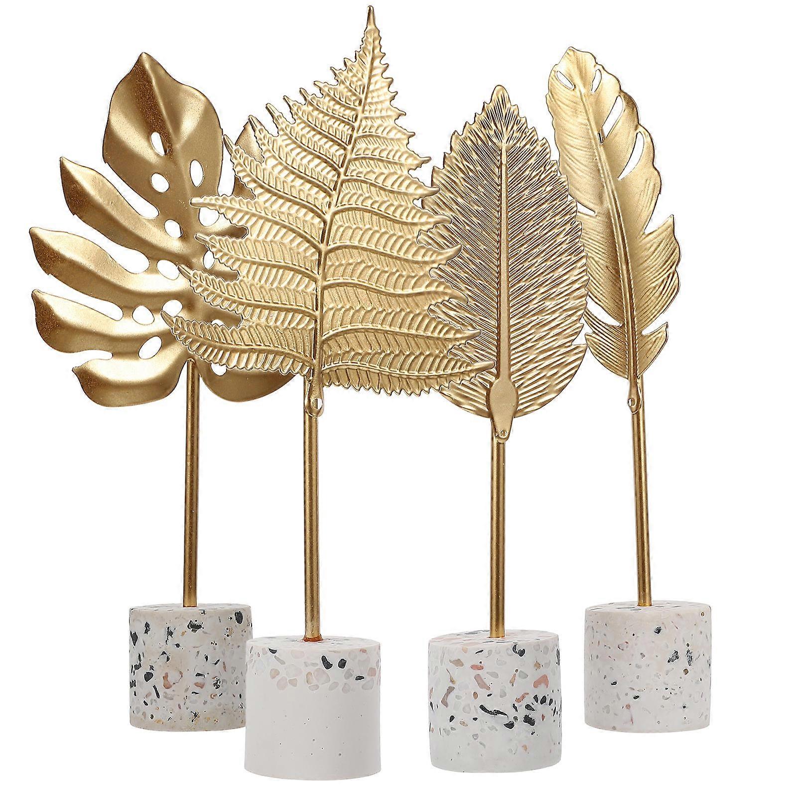 4pcs Creative Leaf Adornment Lifelike Desktop Ornament with Electroplated Finish and Stable Base for Home Crafts and Vibrant Interior Design
