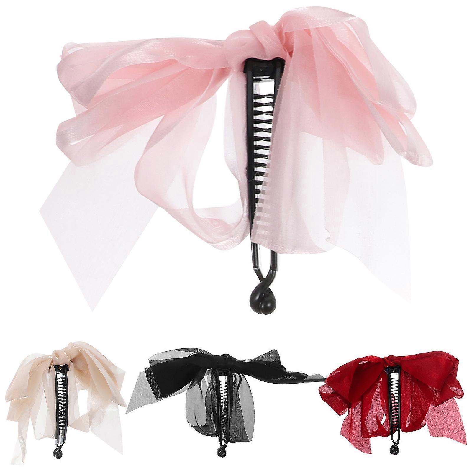 4PCS Large Banana Hair Clips with Chiffon Bow Elegant, Non Damaging Ribbon Hair Accessories for Women