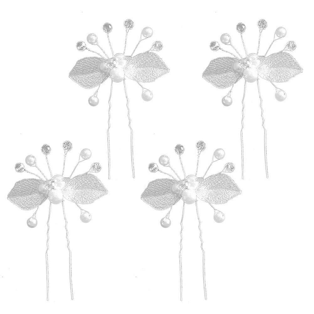 4pcs Handmade Leaf Hair Clip Fashion Hair Accessories Pearl U Shaped Hairpin Creative Hair Decor (Silver)