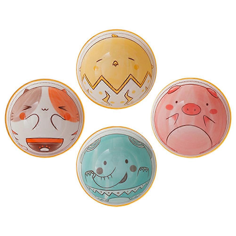4pcs Hand Painted Cartoon Animal Ceramic Snack Bowls for Home or Restaurant Use – Cute Chicken, Pig, Elephant & Cat Designs – Tableware for Adults