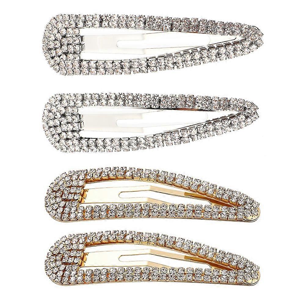 4PCS Rhinestone Snap Hair Clips Large Crystal Metal Barrettes Lightweight Side Clamps Stylish Hair Accessories for Women Friends Mothers