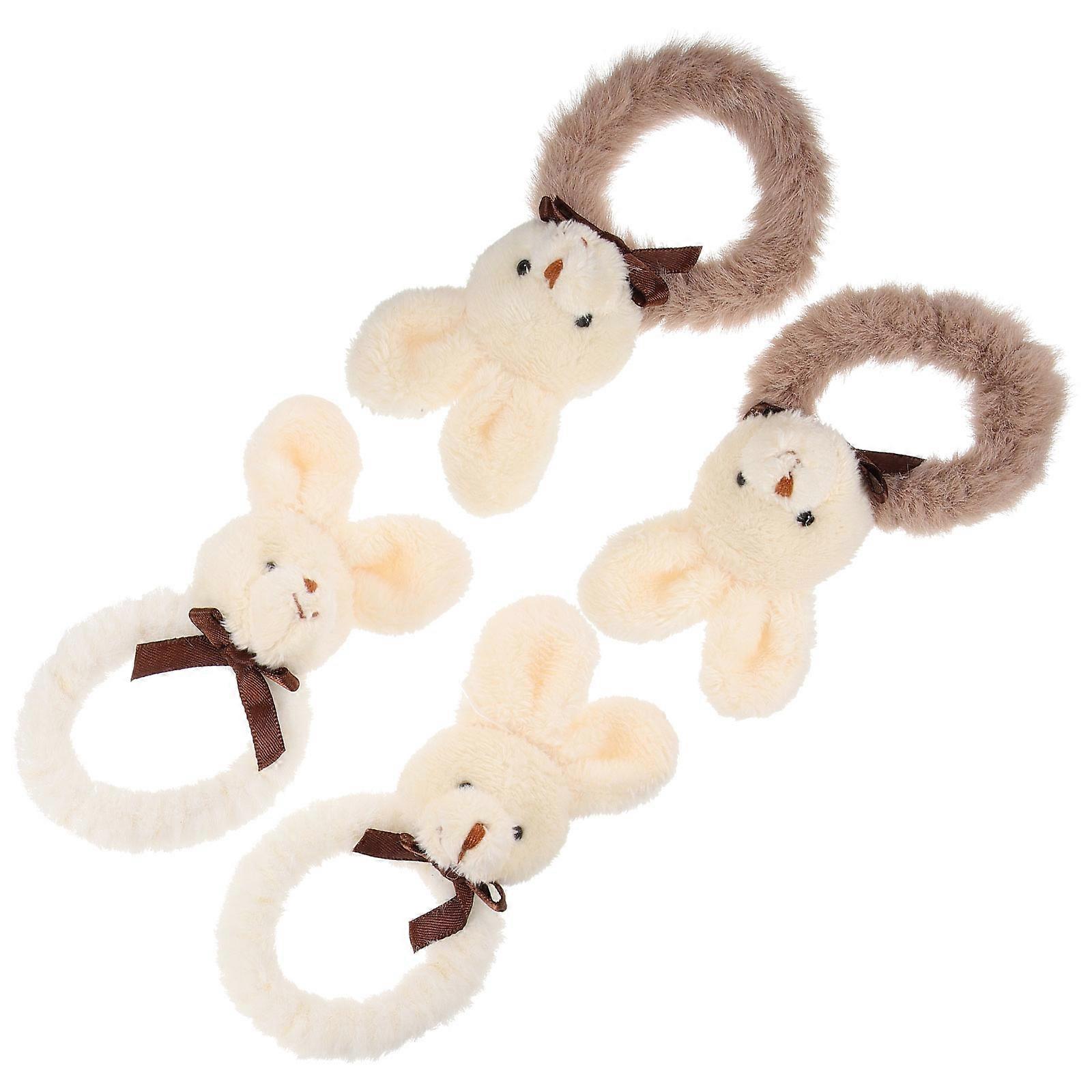 4pcs Bunny Shaped Elastic Hair Bands Soft Plush Hair Ties for Everyday Wear and All Occasions