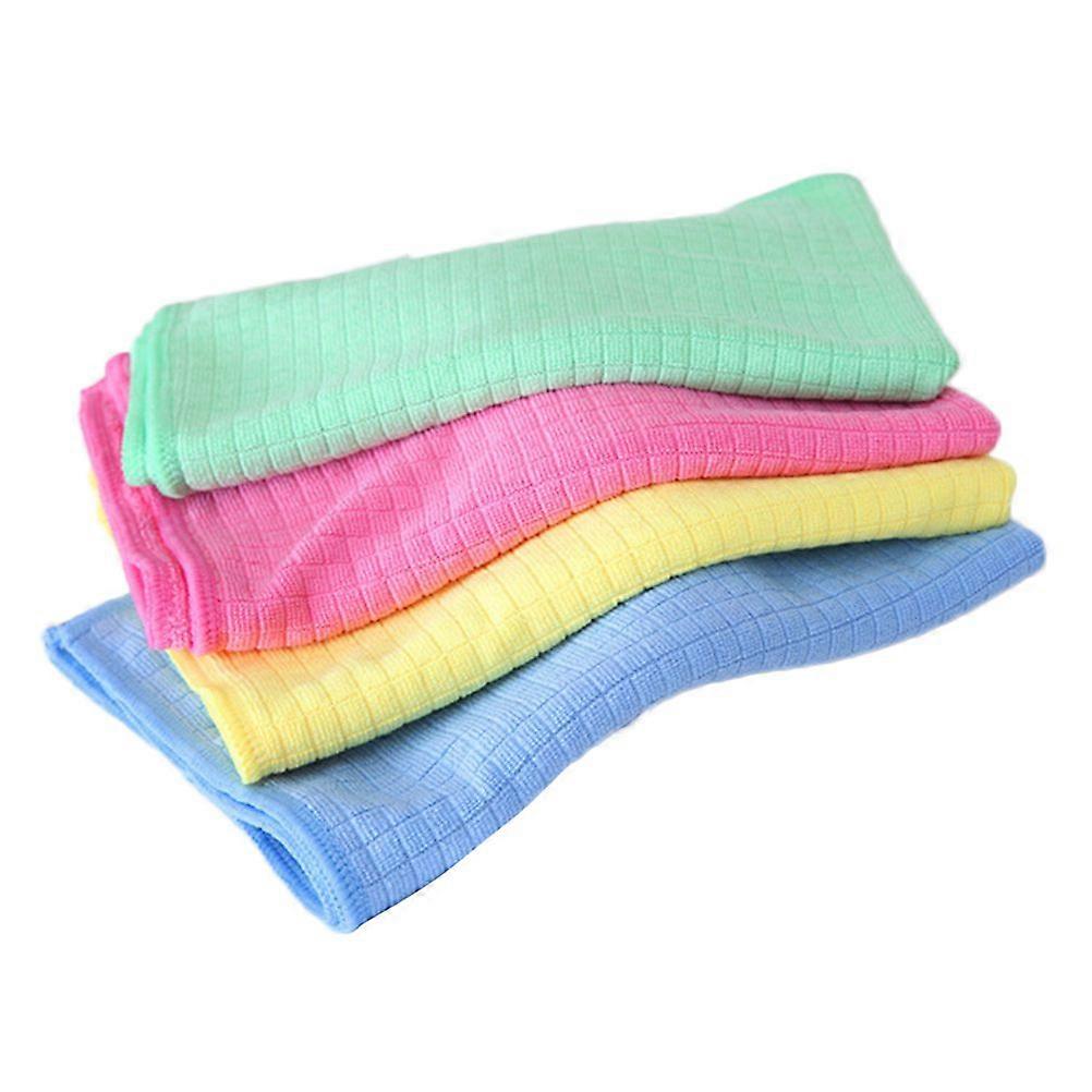 4pcs Microfiber Duster Cloth Grids Cleaning Cloth Kitchen Scouring Pad Towels (Assorted Color)