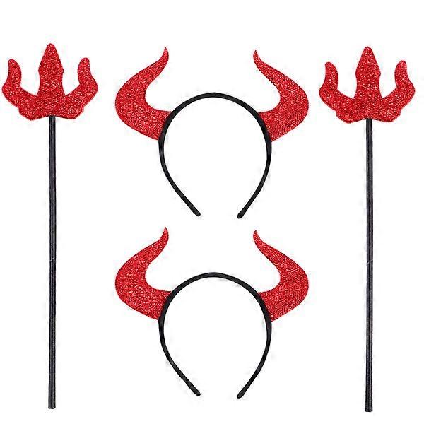 4pcs Horn Hair Devil Trident Halloween Devil Costume Set Cosplay Prop (Red)