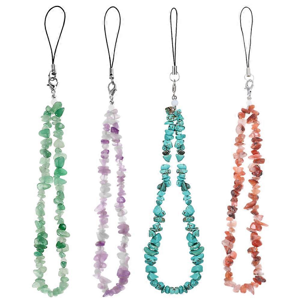 4Pcs Beaded Phone Lanyard Crystal Stone Phone Charm Strap Hand Wrist Lanyard