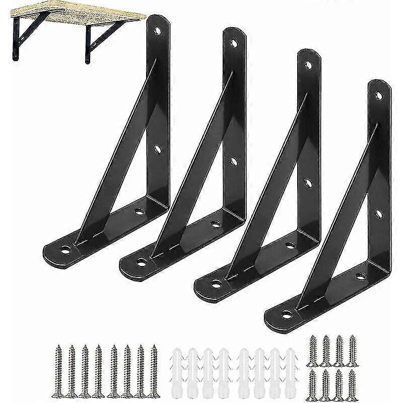 4 Pcs Black Wall Shelf Bracket 15cm Triangular Bracket Black Iron Wall Shelf Bracket With Screws For Shelf Decor Kitchen Bedroom Furniture Hanging Clo