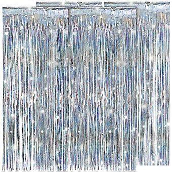 4 Pcs Fringe Backdrops Silver Fringe Party Backdrop Curtains Silver Foil Fringe Curtain Streamers Party Decorations
