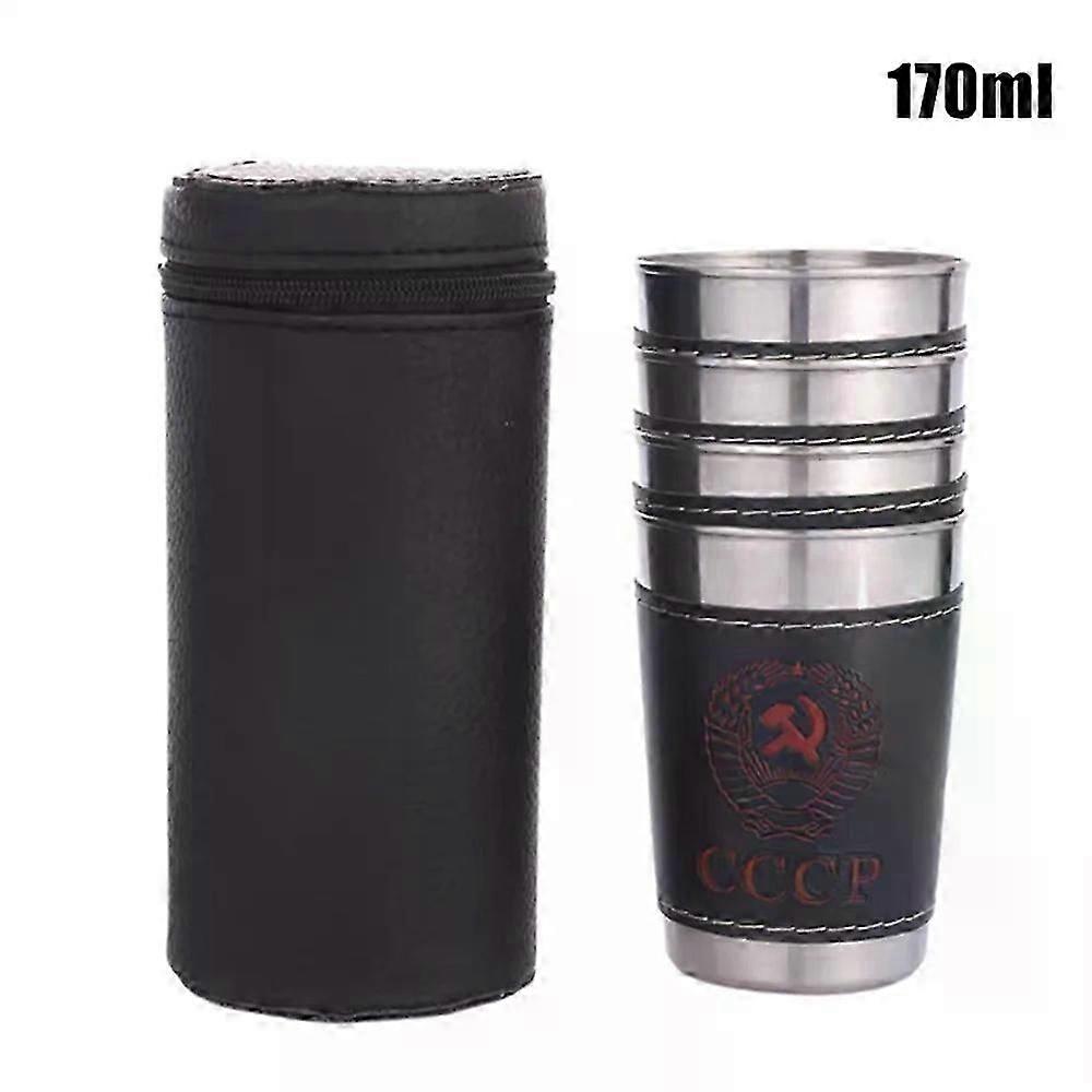 4pcs 30ml/70ml/170ml Outdoor Camping Cup Tableware Travel Cups Set Stainless Steel Cover Mug Drinking Coffee Tea Beer With Case
