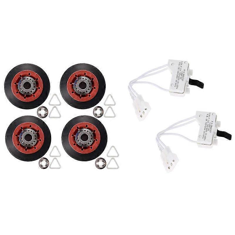 4Pcs 8536974 Dryer Drum Roller & 2Pcs for 3406107 Dryer Door Switch Assembly Replacement Par