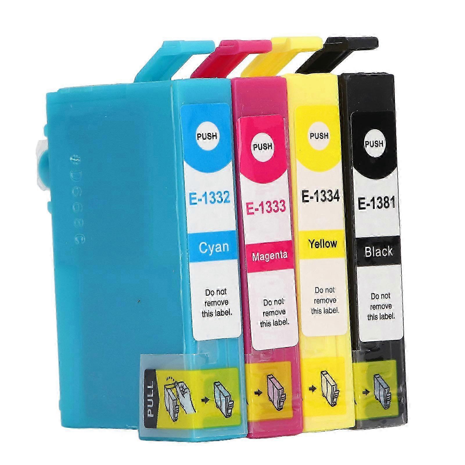 4 Pcs Ink Cartridge Black Cyan Magenta Yellow Smoothly Accurate Clear Anti Fade Printer Ink Cartridge for Stylus T1381 T1332 T1333 T1334
