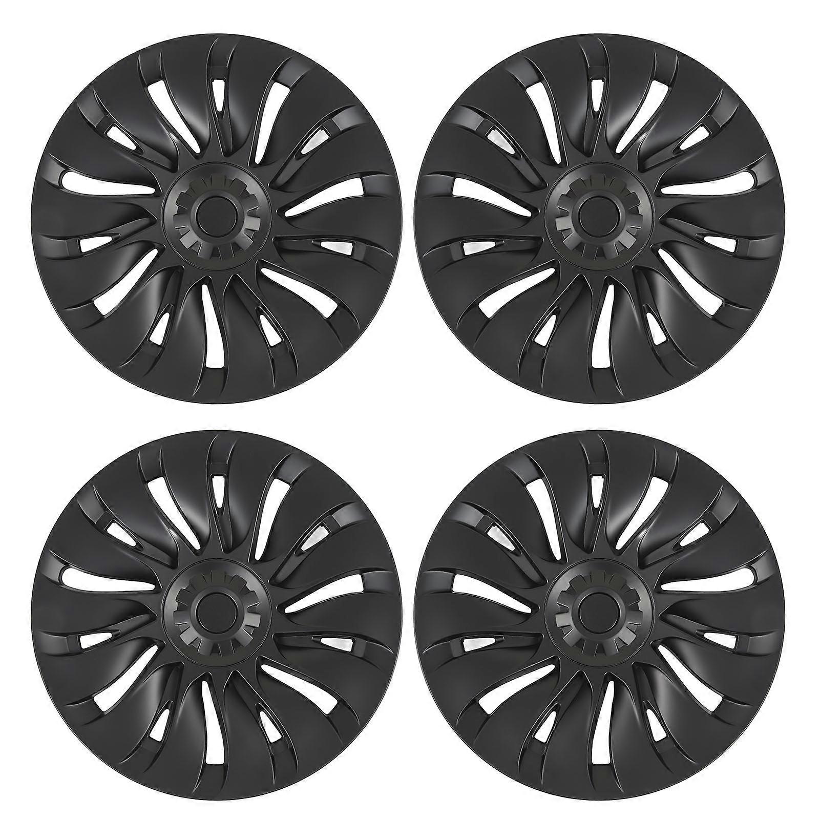 4 Pcs 19 Inch Wheel Hub Cap Matte Black Automobile Wheel Hub Fully Wrap Rim Protector Replacement for Tesla Model Y 2020 to 2023 E2U911