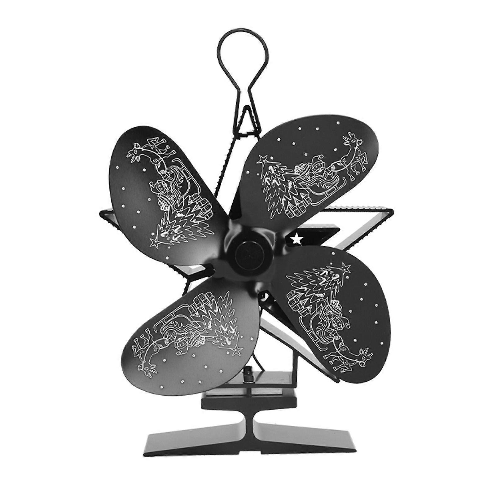 4 Blades Heat Powered Fan Santa Claus Pattern Fireplace Fan for Heat Distribution Circulating Warm AirBlack