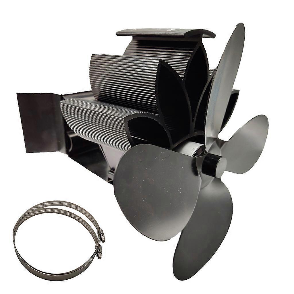 4 Blade Heat Powered Stove Fan for Wood Log Eco Friendly Larger Flow on Chimney for Wood Log for Burner Fireplace Quiet Black