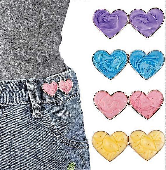 4 Sets Heart Pant Waist Tightener, No Sewing Waist Adjuster for Loose Pants Reusable Adjustable Safety Pins 4 Colors Clip Brooch for Clothes Jeans Ski