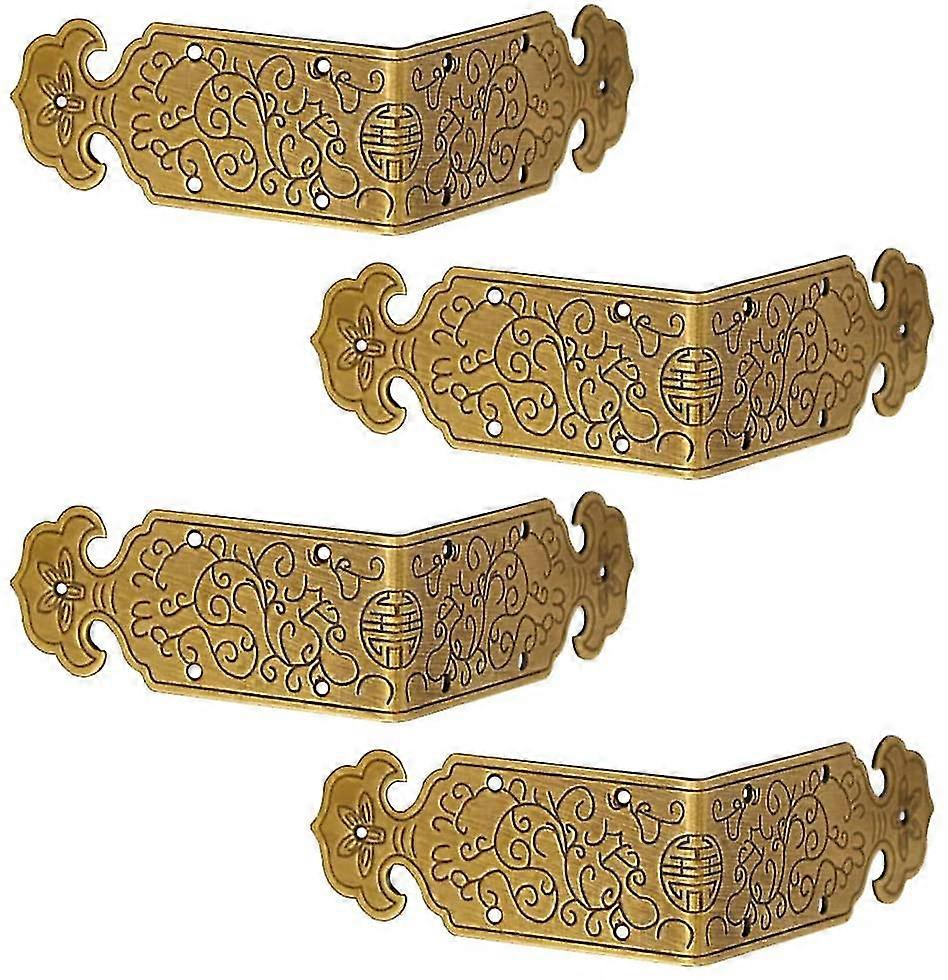 Set Of 4 Decorative Corner Protectors In Aged Brass For Vintage Style Furniture