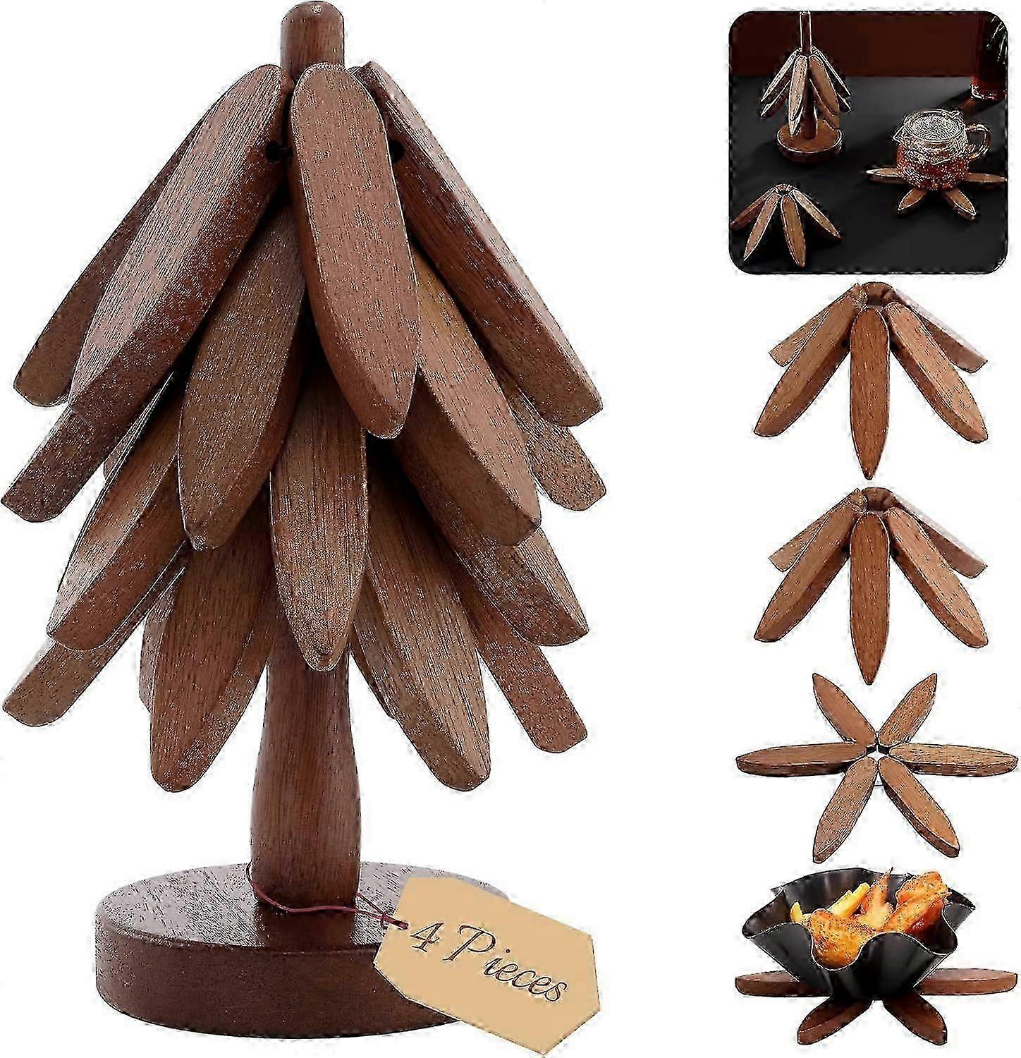 Christmas Tree Wooden Coasters Set of 4, Hot Food Trivet, Wood Insulation Mats