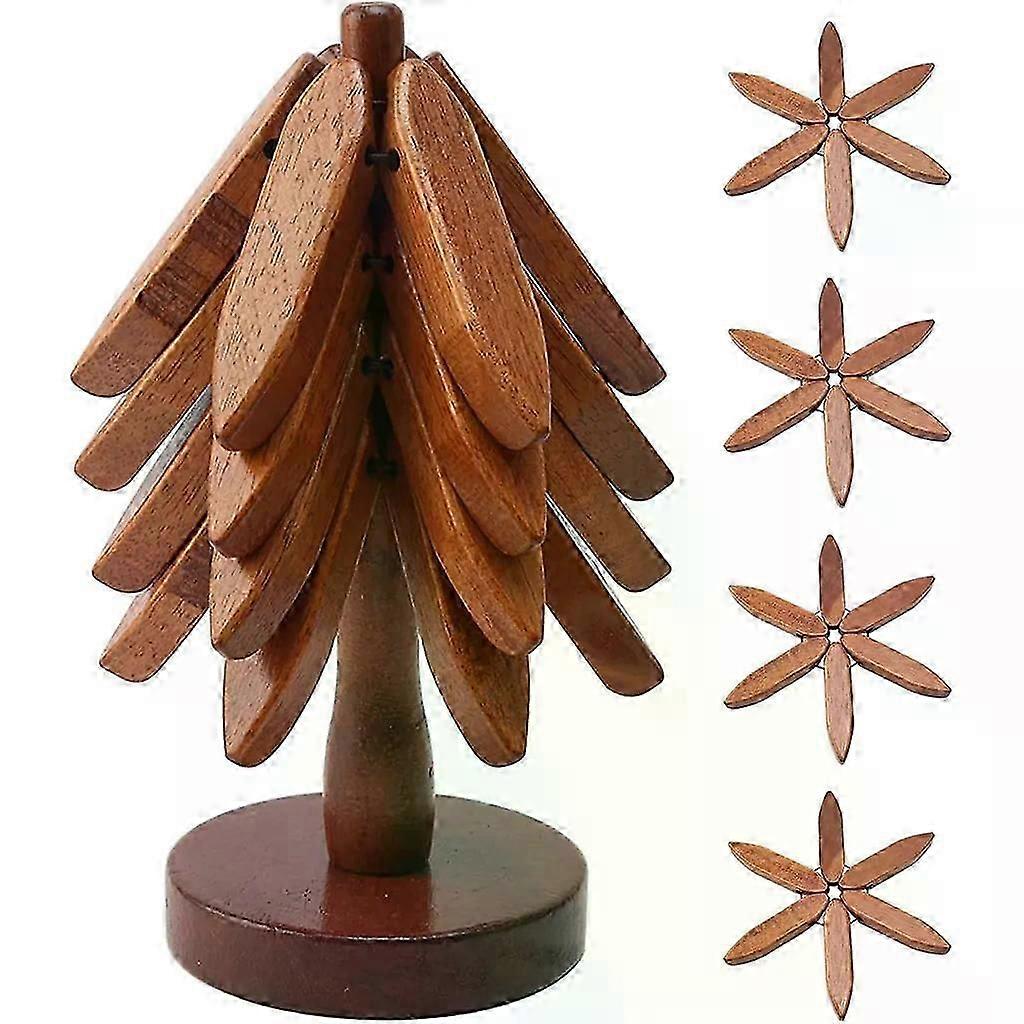 4-Piece Solid Wood Trivet Set, Foldable for Hot Pots and Bowls, Brown Heat Insulation