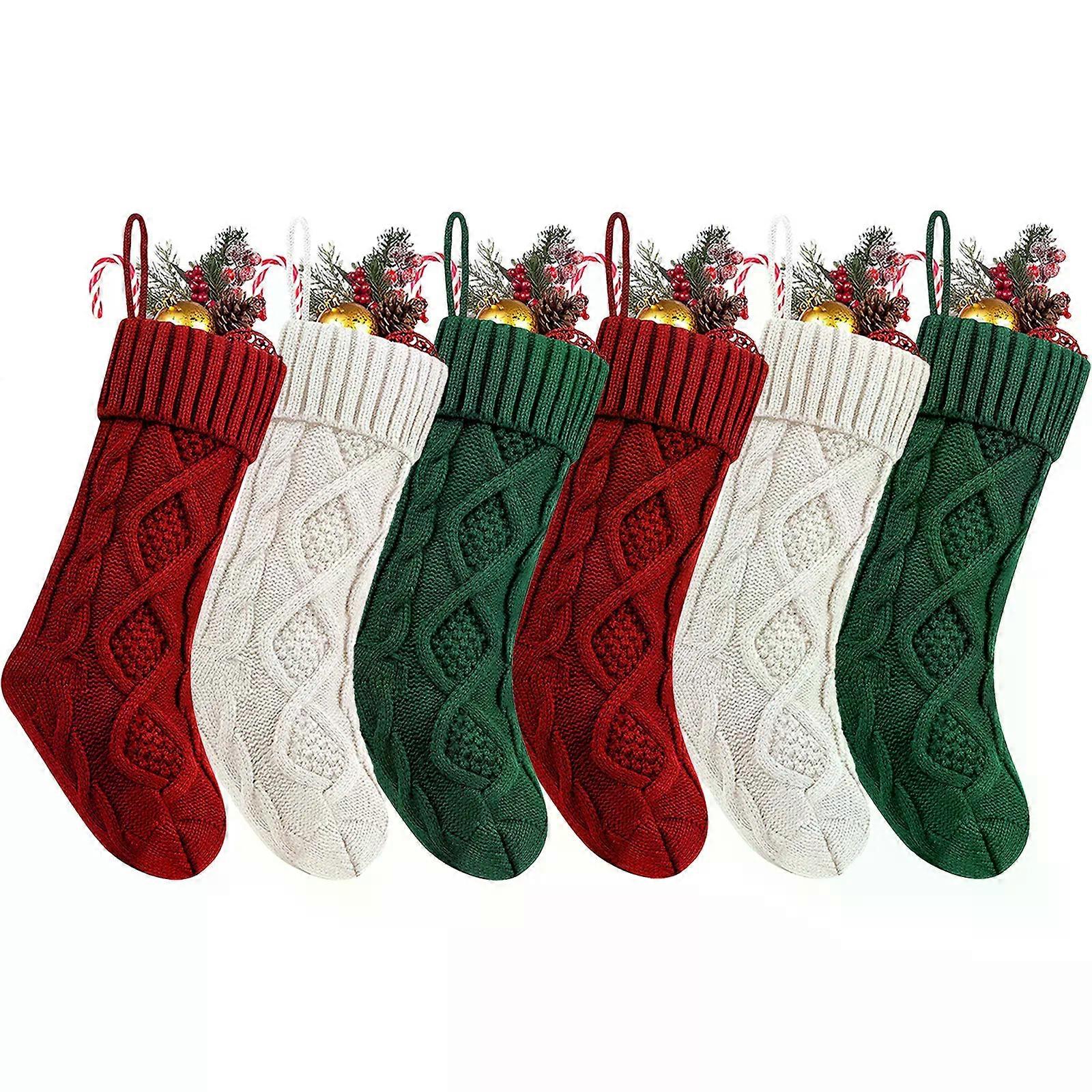 4-18Pack Christmas Stockings 18 Inches Knitted Stocking Xmas Hanging Stockings for Family Christmas Party Classic Decorations
