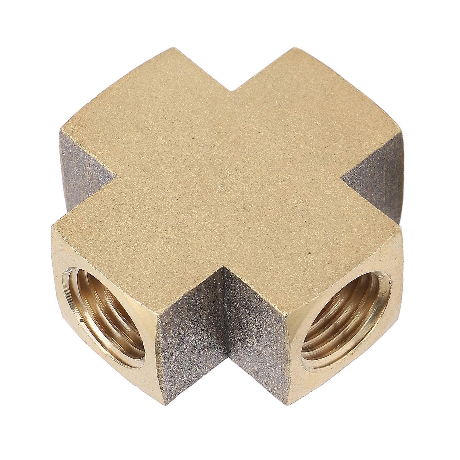 4 Way Brass Pipe Fitting 1/8in Female Thread Universal Metal Brass Pipe Adapter for Vacuum Fuel Air Water Oil Gas