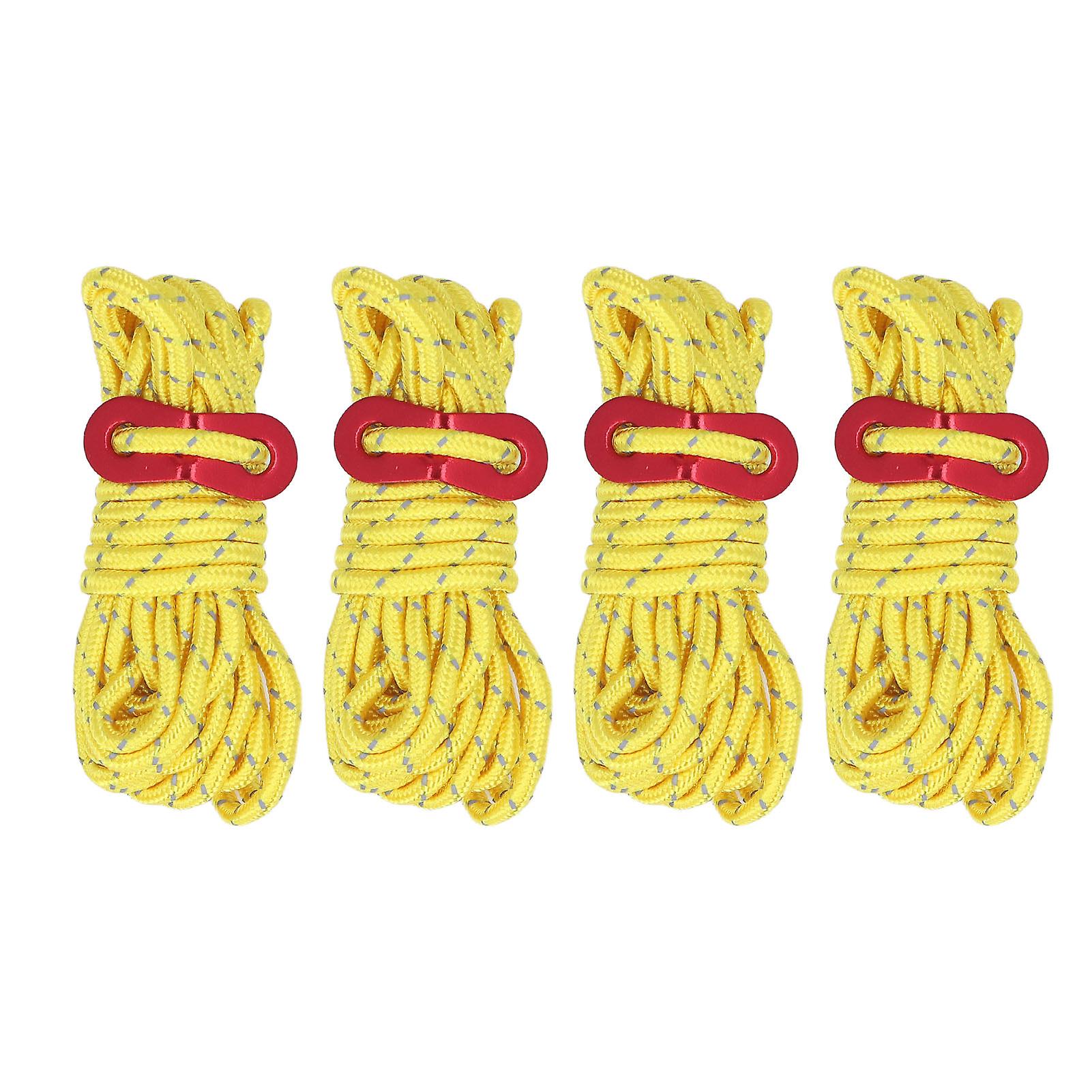 4Pcs 4mm Reflective Tent Rope High Strength Lightweight Camping Cord for Outdoor Camping Hammocks Yellow