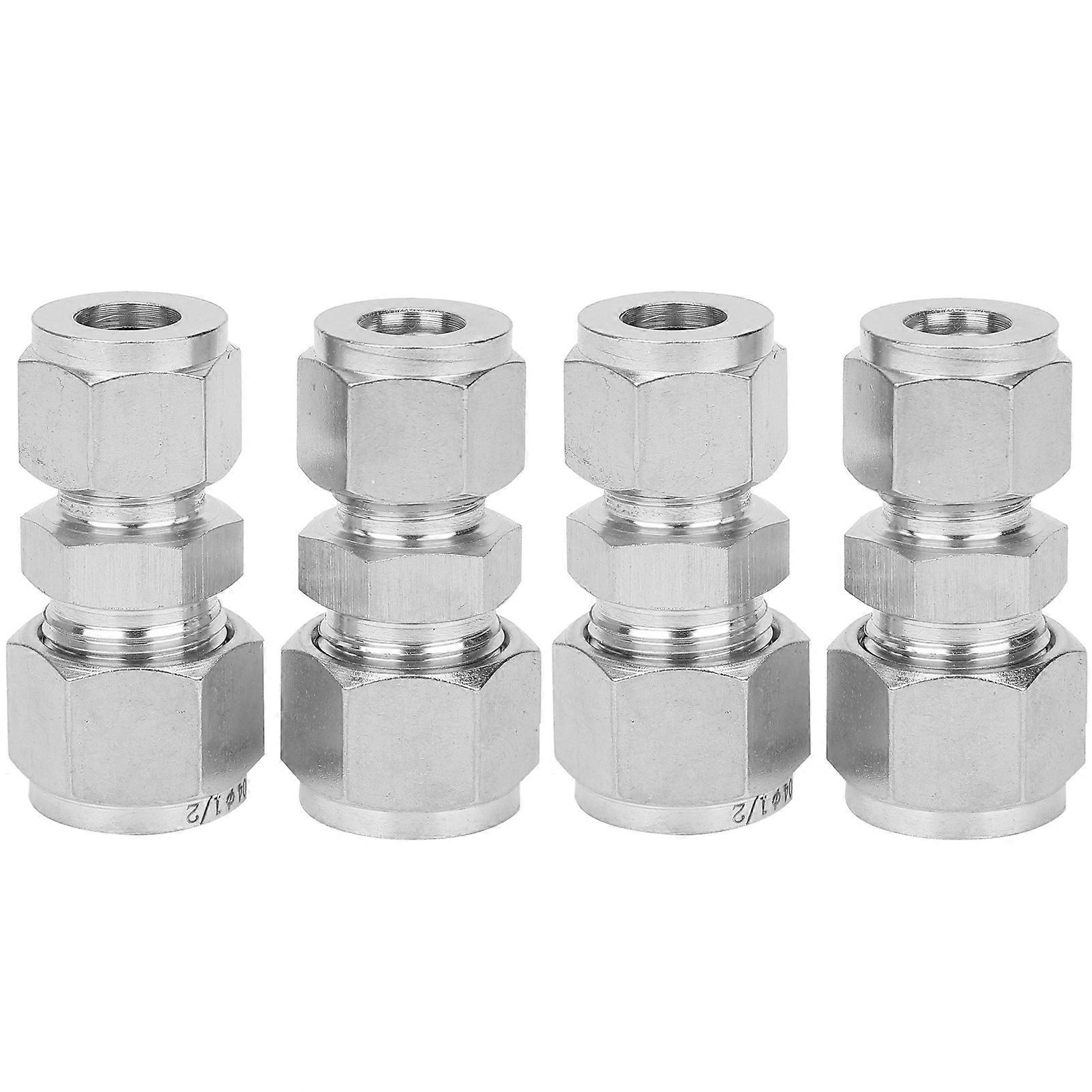 4Pcs Stainless Steel Compression Fitting Straight DoubleFerrule Tube Adapter for Pipe(3/8-1/2 )