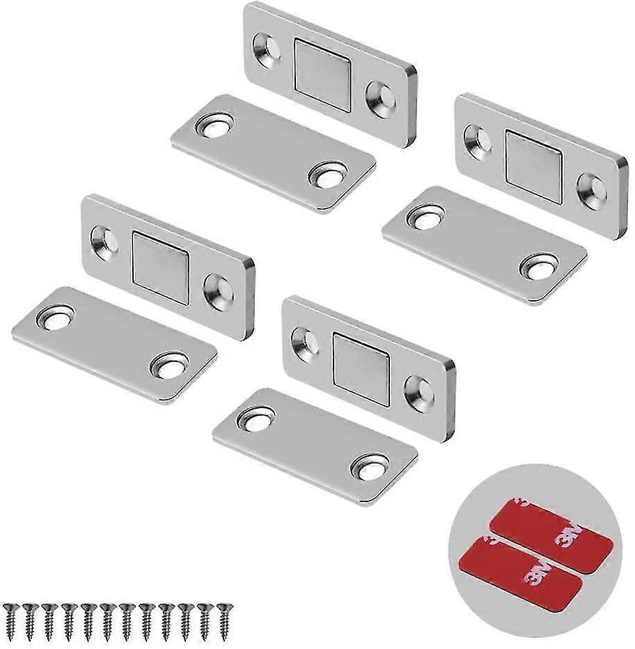 4 Pcs Magnetic Door Catch Ultra Thin Cabinet Magnets Stainless Steel Drawer Magnet Catch (silver)