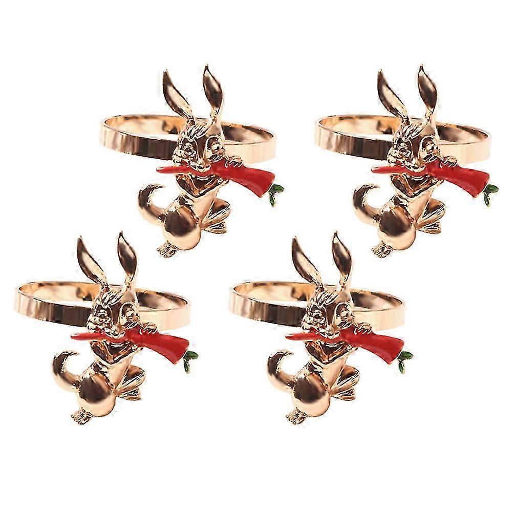Bunny Ear Napkin Buckles Golden Stainless Steel Table Decoration Carrot Shape 4Pcs