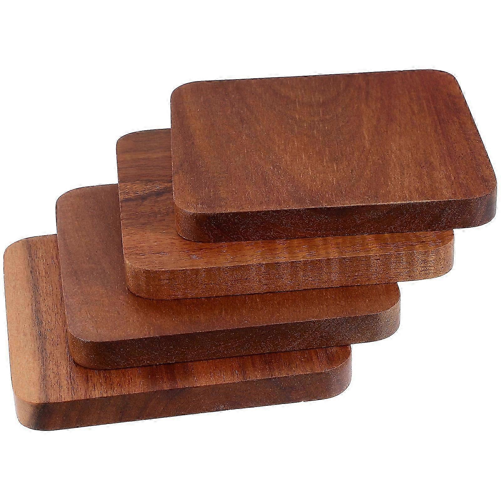 Protective Coffee Coaster Wood Coasters for Drinks Non-Slip Square Chocolate 4Pcs