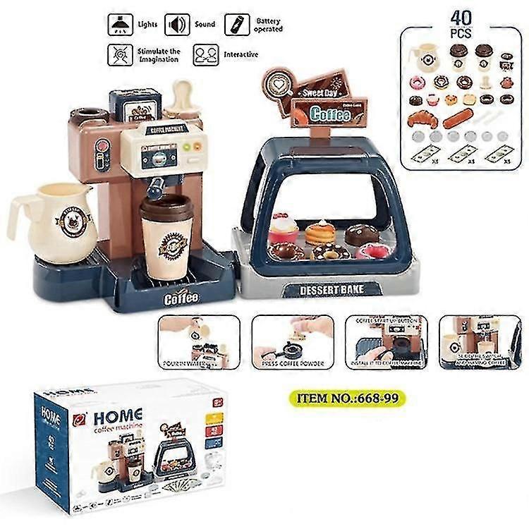 40Pcs Kids Pretend Role Play Toy Coffee Shop with Coffee Maker Machine and Donuts