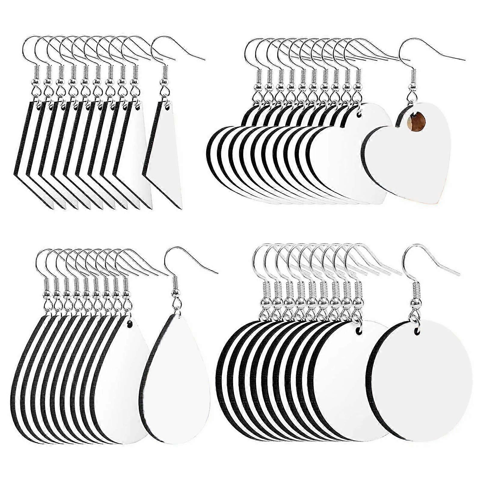 40Pcs Sublimation Blank Earrings Heat Transfer Earrings Unfinished Wood Earring for Jewelry DIY Making Crafts Supplies