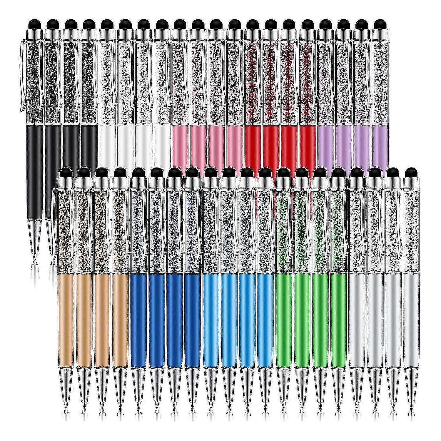 40pcs Crystal Ballpoint Pen Bulk Shiny 2 In 1 Slim Crystal Diamond Screen Stylus Black Gel Ink Ball Hy
