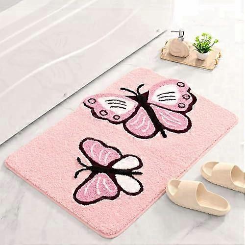 40x60cm Cute Butterfly Bathroom Rugs Girls Funny Bath Mat Non Slip Washable Shaggy Bedroom Runner Rug Floor BathMats Door Mats Absorbent Soft Microfib