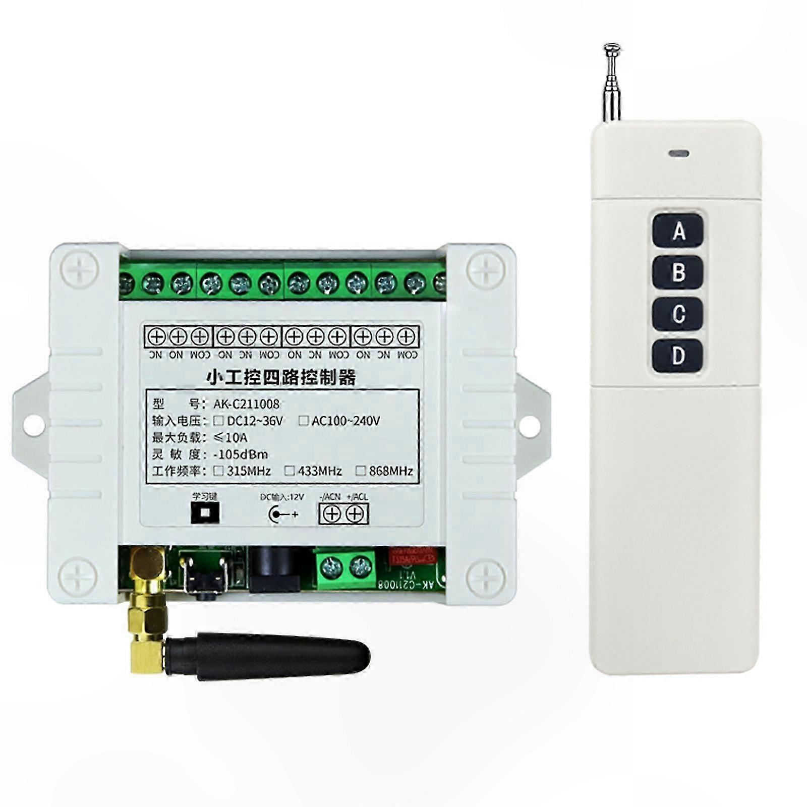 433Mhz Wireless Remote Control RF Remote for Garage Door LED Light AC220V 4 Channel 3000m Relay Receiver and Transmitter