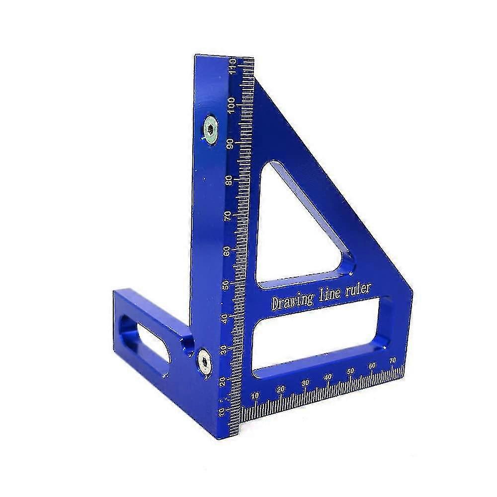 Multi-function for one tool, precise measurement, marking. Made of aluminum alloy, durable and comfortable to use in hand. Thick ruler, makes ruler stable and accurate. Precise scale and simple operation. Measuring, correcting, marking in one. Perfect for DIY, engineer, carpentry, woodworking and home use. Size: 112*79*85mm Quantity: 1 piece Blue color
