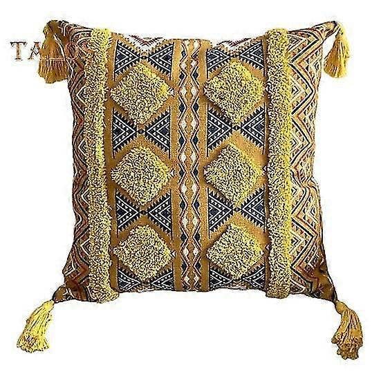 45x45CM Tufted Throw Pillow Case with Tassels Bohemian Ethnic Style Geometric Zipper Cotton Sofa Bedroom Decoration Pillow Cushion Cover